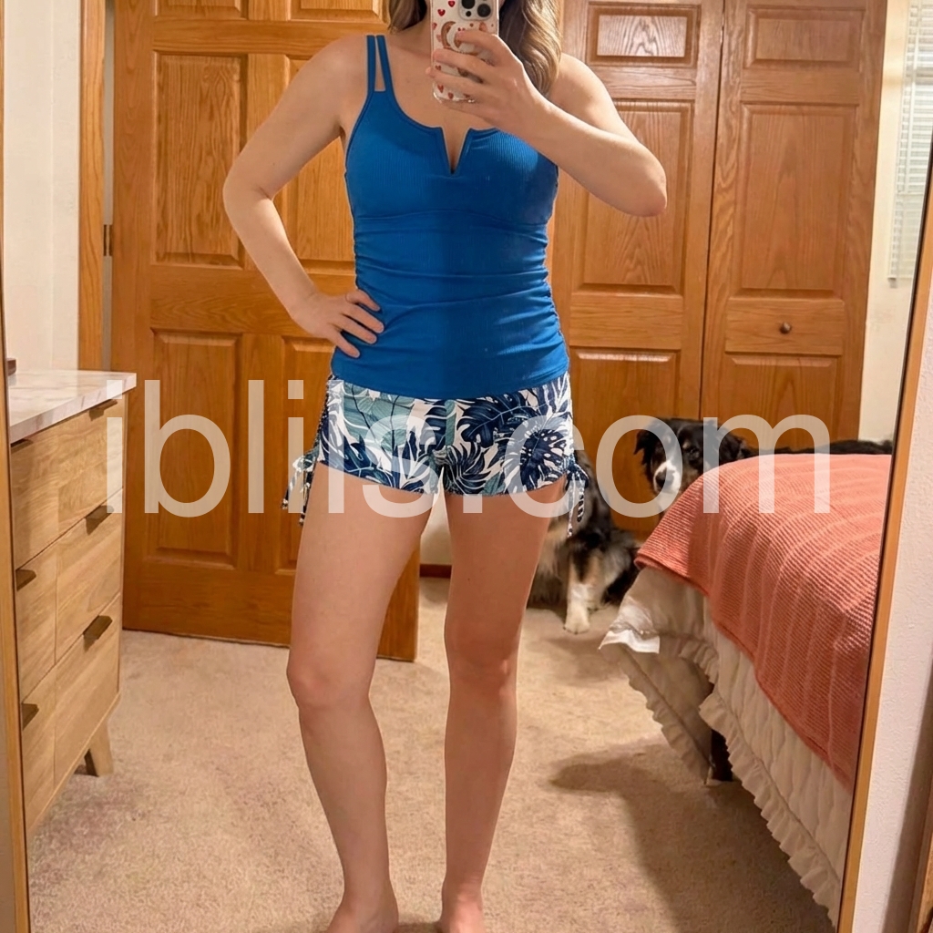 I absolutely love this swim set! The blue tank is super flattering and fits comfortably without feeling too tight. I wore it at the beach for hours and it still looked great. The drawstring shorts are a perfect match—light, stylish, and easy to move in. Overall, it feels like a high-quality summer outfit.