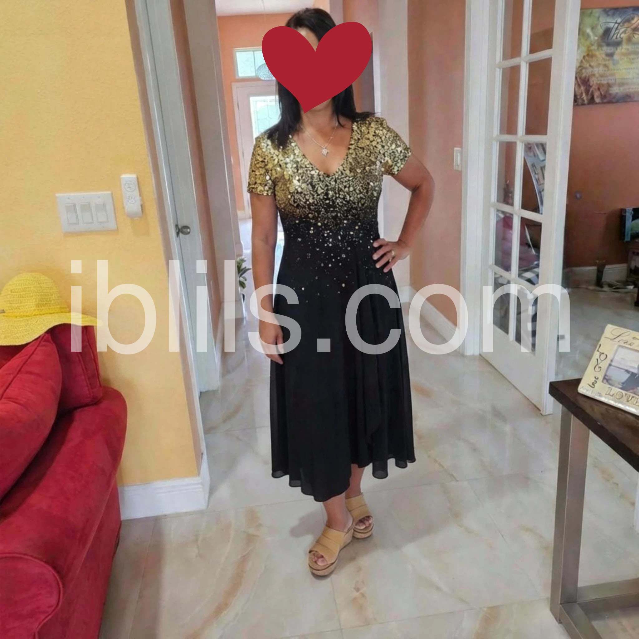 I was hesitant to buy a dress online, but I followed the size chart and it fits wonderfully. The delivery was fast and it arrived in great condition. The sparkly top adds such a nice touch of glamour. Very happy with this purchase.