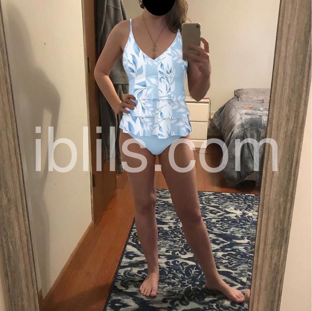 I’m 5’11”, 160#, and normally wear a medium top. I ordered the L. It quickly became my favorite bathing suit, particularly because I have no booty, so the rouching design makes that a little less awkward. 😂